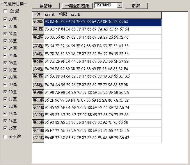 比較簡單只要針對要加密的區域勾選即可,或全選、成為全加密卡,